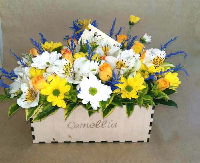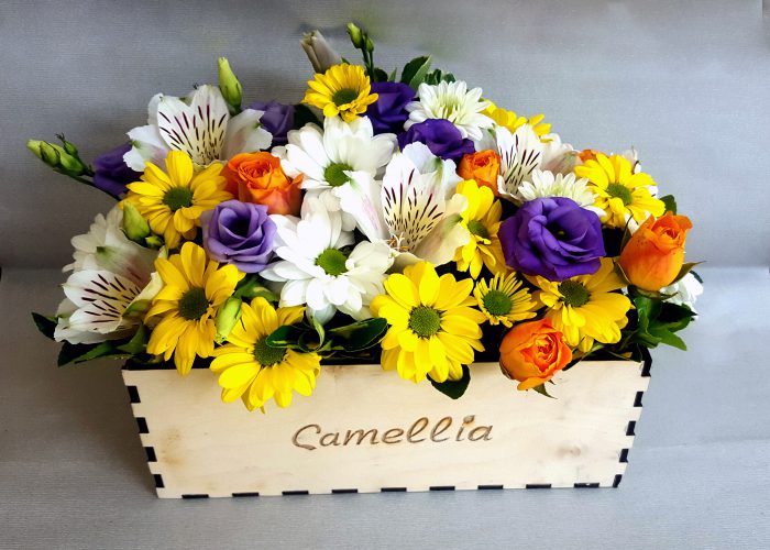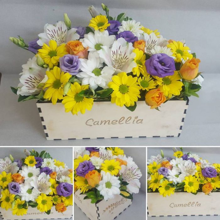 ყვავილები ხის კოლოფში