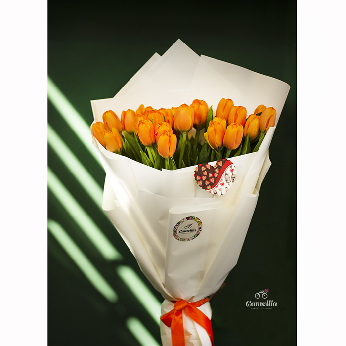 Tulips (Tulipa) form a genus of spring-blooming perennial herbaceous bulbiferous geophytes (having bulbs as storage organs). The flowers are usually large, showy and brightly colored. generally red, pink, yellow, or white (usually in warm colors).