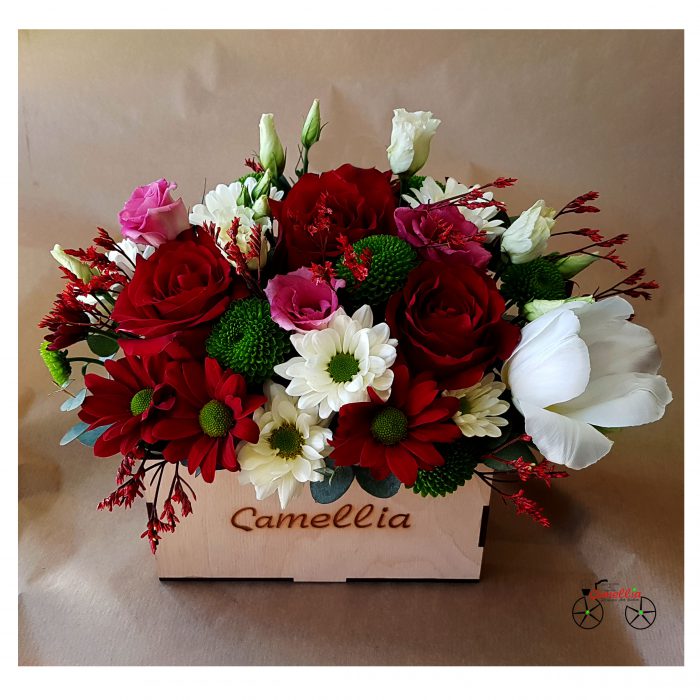 ყვავილები ხის კოლოფში