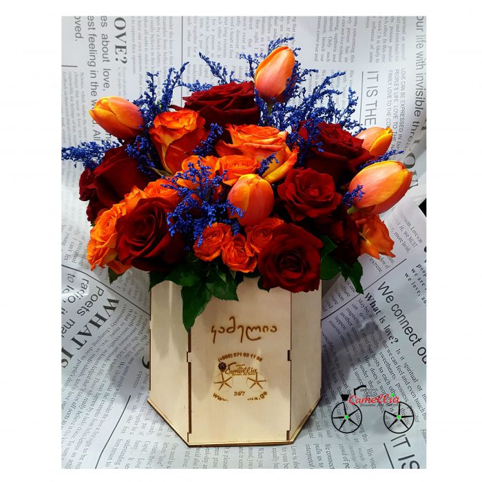ყვავილების მიქსი ხის კოლოფში