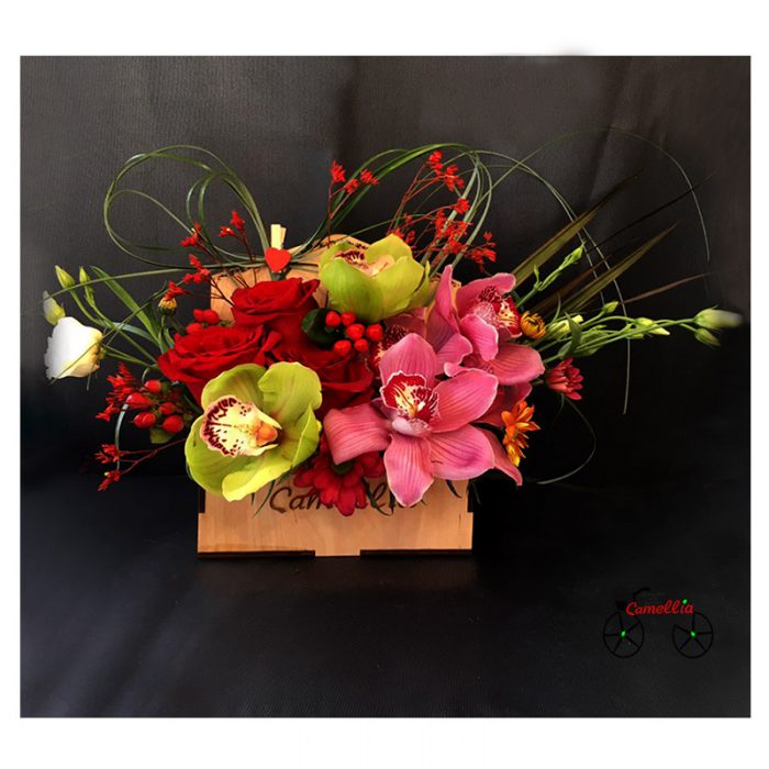 კომპოზიცია კონვერტის ფორმის ხის კოლოფში